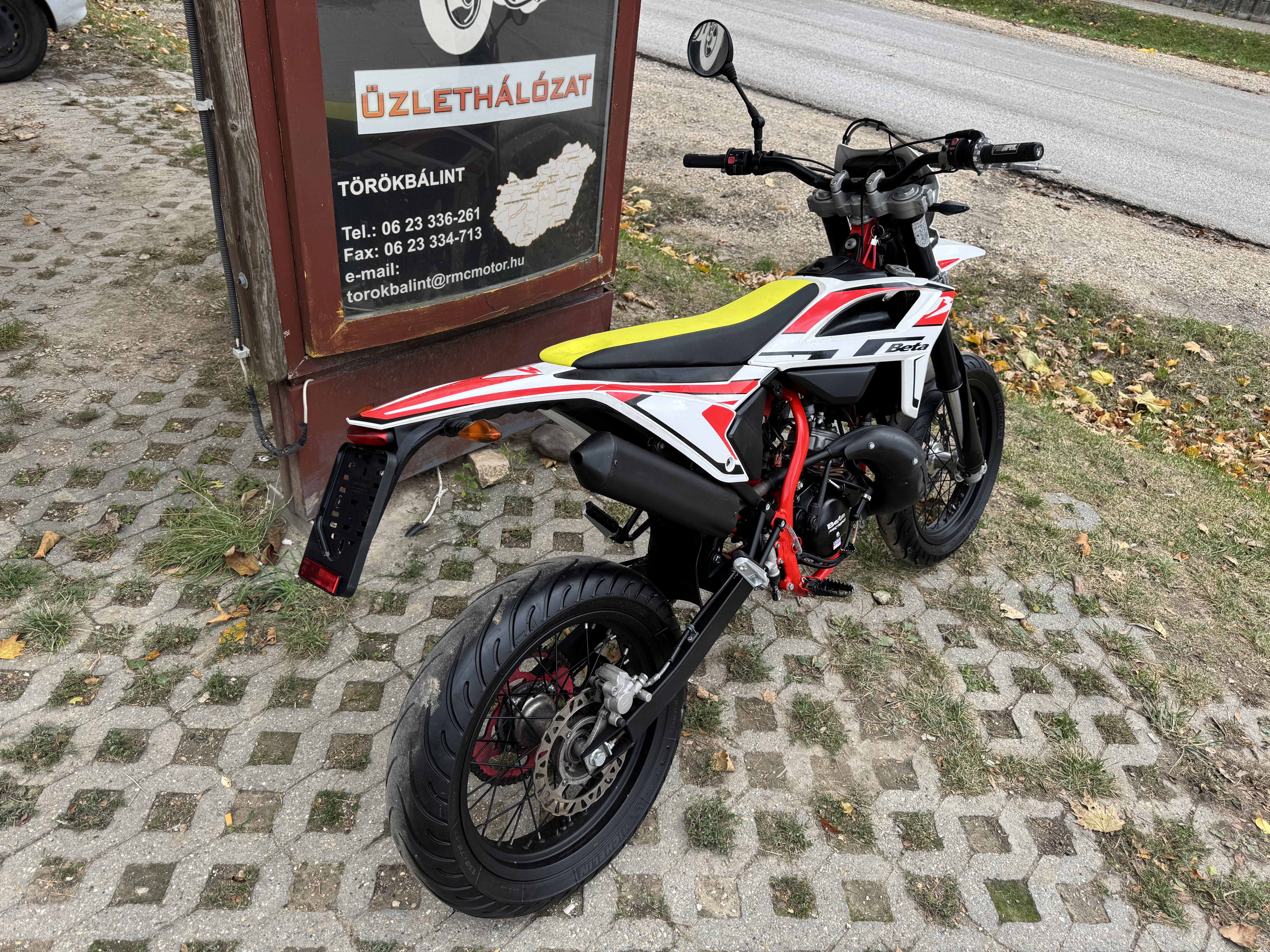 💥Beta TRACK 50, CSÚCS supermoto, 2023-as, újszerű állapotú, garanciával, valós évjáratot igazoló dokumentumokkal, szezon előtti áron, 845e Ft helyett 795e Ft-ért eladó. 💥a Beta csúcskategóriás supermotoja fordított első teleszkópokkal, gázos hátsó rugóstaggal, erősített fékekkel, nagyobb-, hullásmos tárcsákkal felszerelve minden különleges igényt kielégít 💥hibátlan, újszerű műanyagok, gyári dekor, jó állapot 💥AM6, 6 sebességes, dinamikus, vízhűtéses motorblokk 💥szervizünkben átvizsgált, költségmentes, tesztelt motorkerékpár 💥megállapodás szerinti garancia, házhoz szállítás 💥egyes termékek és szolgáltatások Szép kártyával is fizethetők 💥ajándék törzskártya, amellyel üzletünkben kedvezménnyel vásárolhat mindenféle felszerelést, tartozékot 💥💥További választékunk és elérhetőségeink az rmcmotorok.hu oldalon találhatók. Érdeklődni hétköznap, nyitvatartási időben, 10-18 közt személyesen a törökbálinti RMC Motoros Boltban, vagy telefonon a 06 23 336261, illetve a 06 20 3899802 számon lehet.