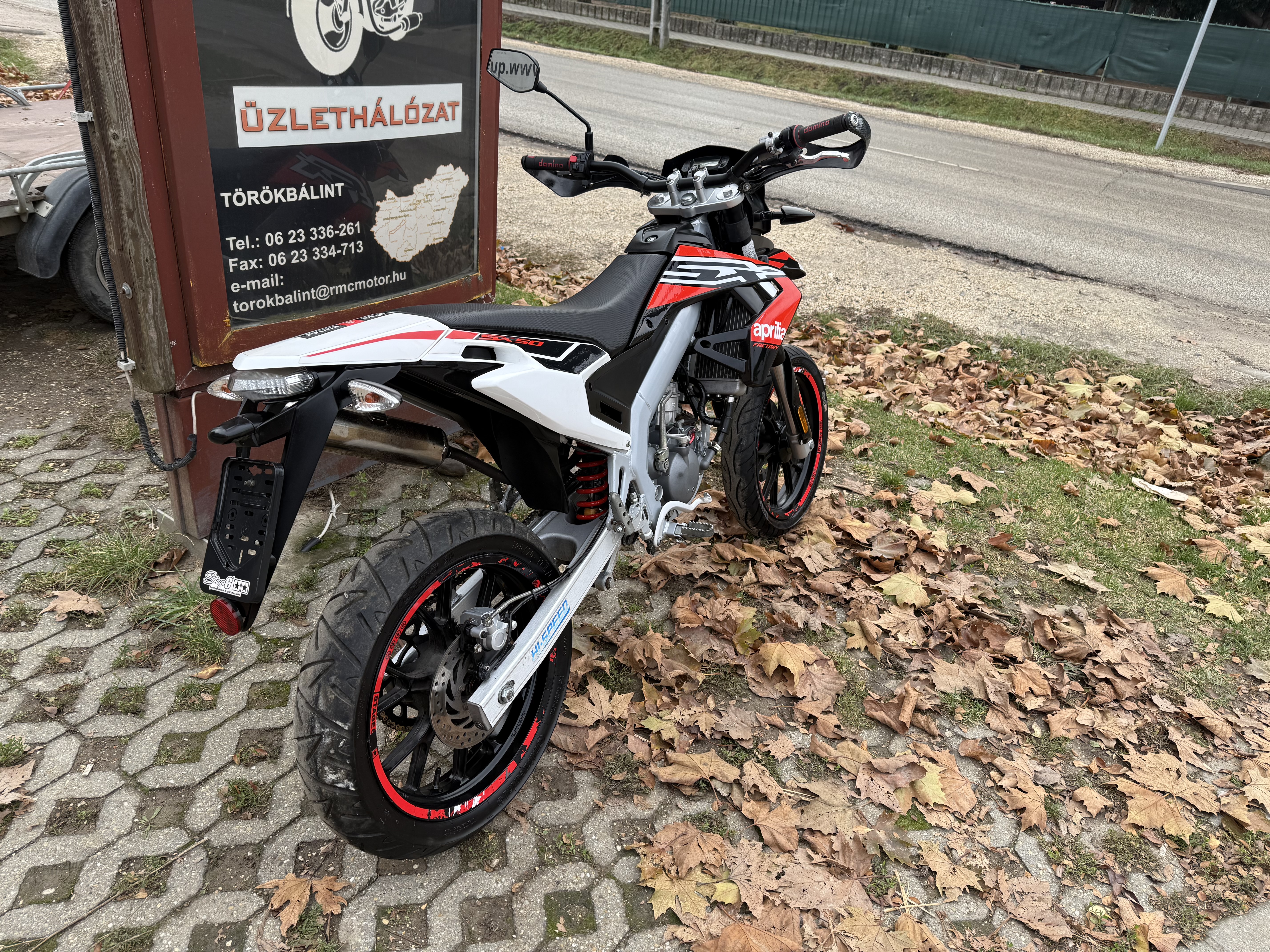 💥😎🔥Aprilia SX50 Factory PRO, fordított első teleszkópos supermoto, valós évjáratot igazoló dokumentumokkal, szezon előtti áron 795e Ft helyett 745e Ft. 😎🔥PRO verzió, fordított első teleszkóp, himbás hátsó futómű, alu lengővilla, erősített fékek 😎🔥rezo kipufogórendszer (a rendszer új ára 340 euro) 😎🔥hibátlan műanyagok, sérülésmentes, gyári dekor, újszerű állapot 😎🔥D50B, 6 sebességes, dinamikus, vízhűtéses motorblokk 😎🔥jó állapotú gumiabroncsok 😎🔥szervizünkben átvizsgált, tesztelt motorkerékpár 😎🔥megállapodás szerinti garancia, házhoz szállítás 😎🔥egyes termékek és szolgáltatások Szép kártyával is fizethetők 😎🔥ajándék törzskártya, amellyel üzletünkben kedvezménnyel vásárolhat mindenféle felszerelést, tartozékot 😎🔥🔥További választékunk és elérhetőségeink az rmcmotorok.hu oldalon találhatók. Érdeklődni hétköznap, nyitvatartási időben, 10-18 közt személyesen a törökbálinti RMC Motoros Boltban, vagy telefonon a 06 23 336261, illetve a 06 20 3899802 számon lehet.